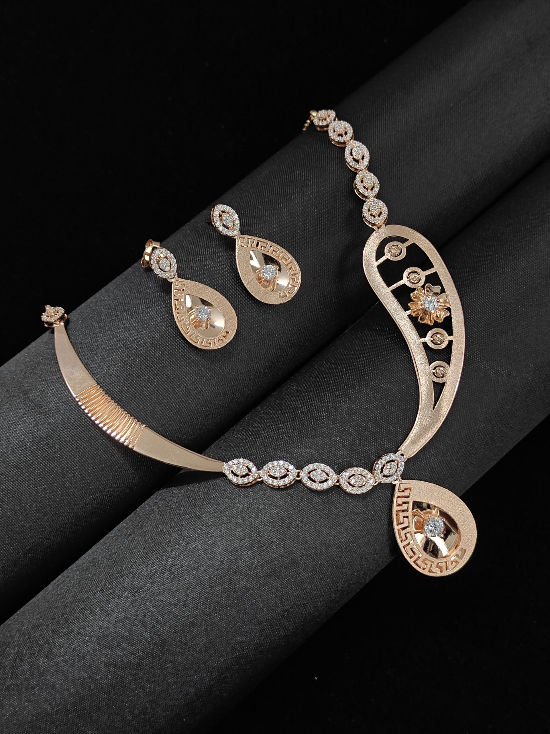 A stunning blend of 92.5 Sterling Silver with a rose-gold finish, adorned with sparkling cubic stones.