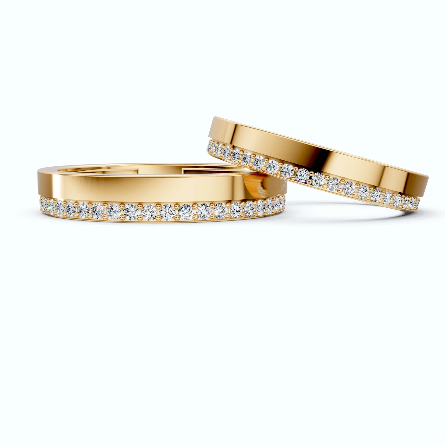 Elegant Flat Edge Eternity Couple Wedding Rings