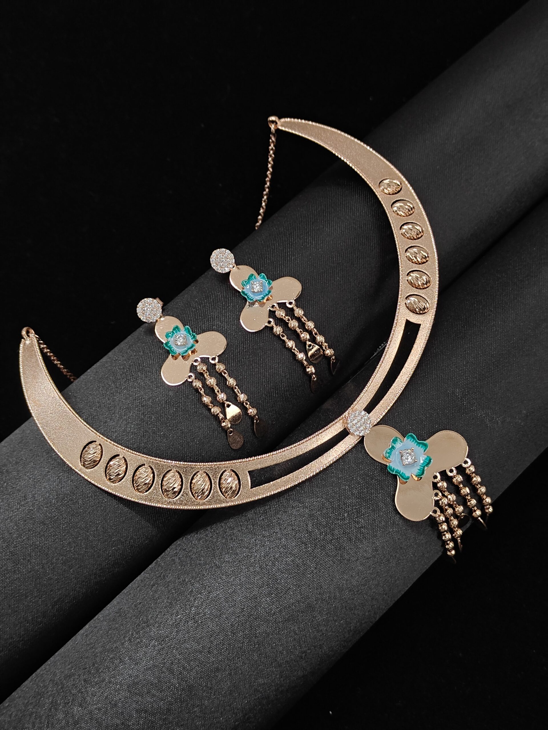 A mesmerizing 92.5 Sterling Silver necklace with rose-gold polish, adorned with turquoise floral motifs and delicate bead detailing.