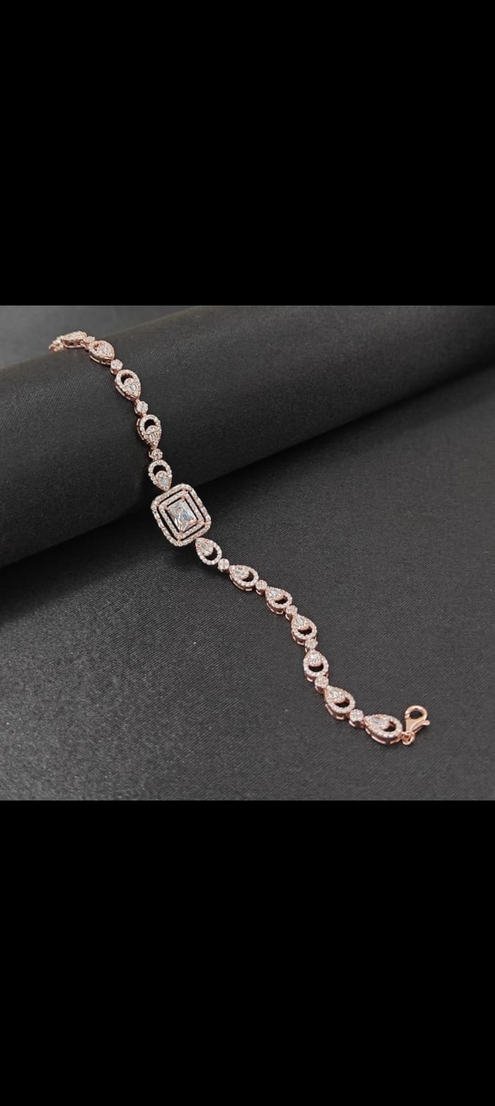 Regal Rose Gold Bracelet ✨ Made in 92.5 Sterling Silver, this masterpiece shines with a stunning square centerpiece and elegant teardrop motifs, adding royal grace to […]